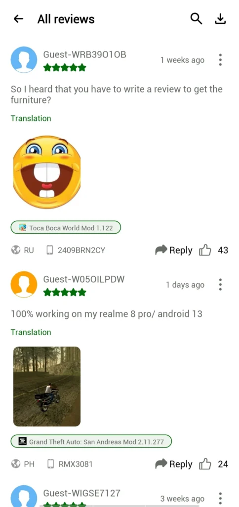 You can share feedback to request newer app versions and read real user reviews before downloading. This helps you know if an app works properly and also supports other users.